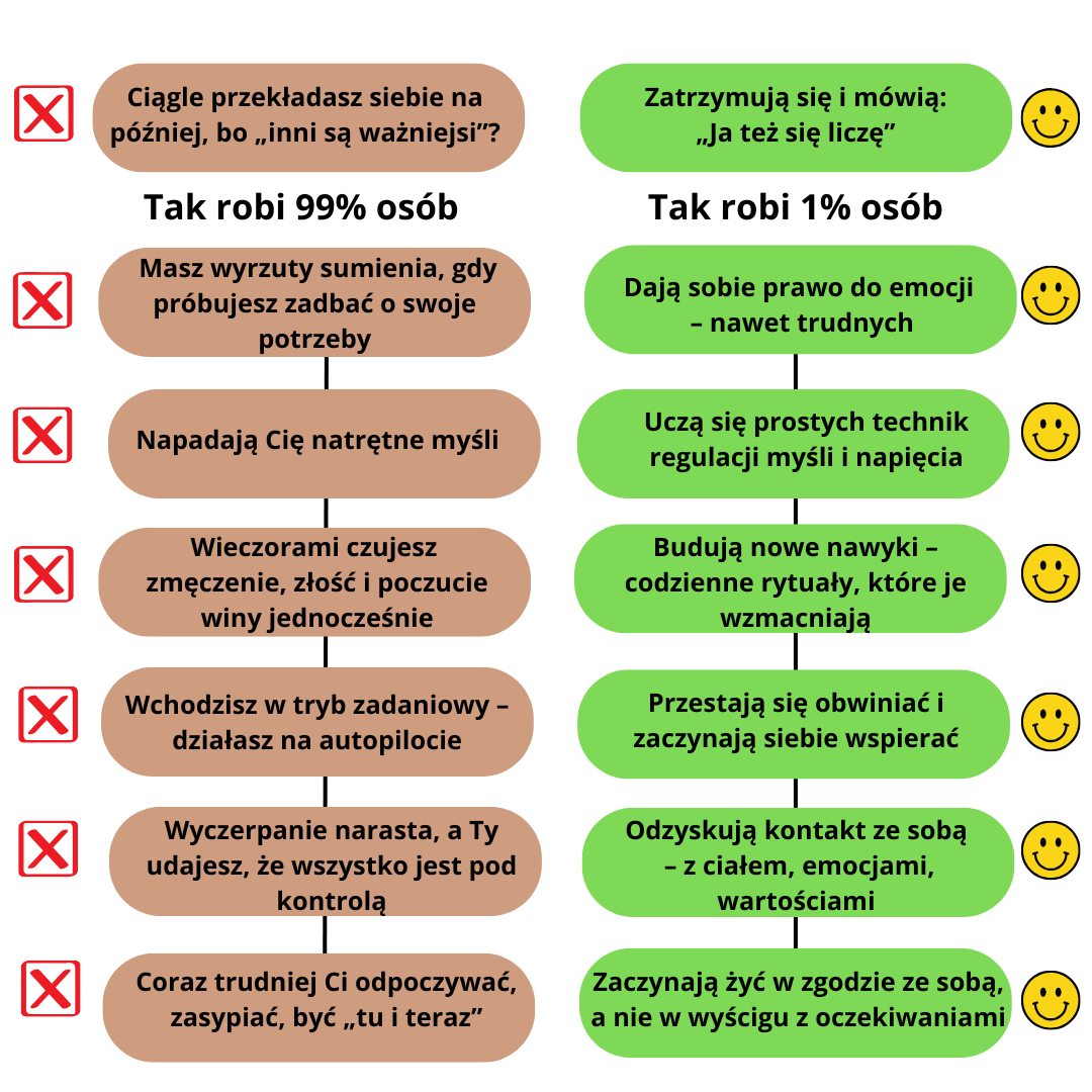 ✅nauczysz się rozpoznawać momenty, w których warto się zatrzymać i zadbać o siebie